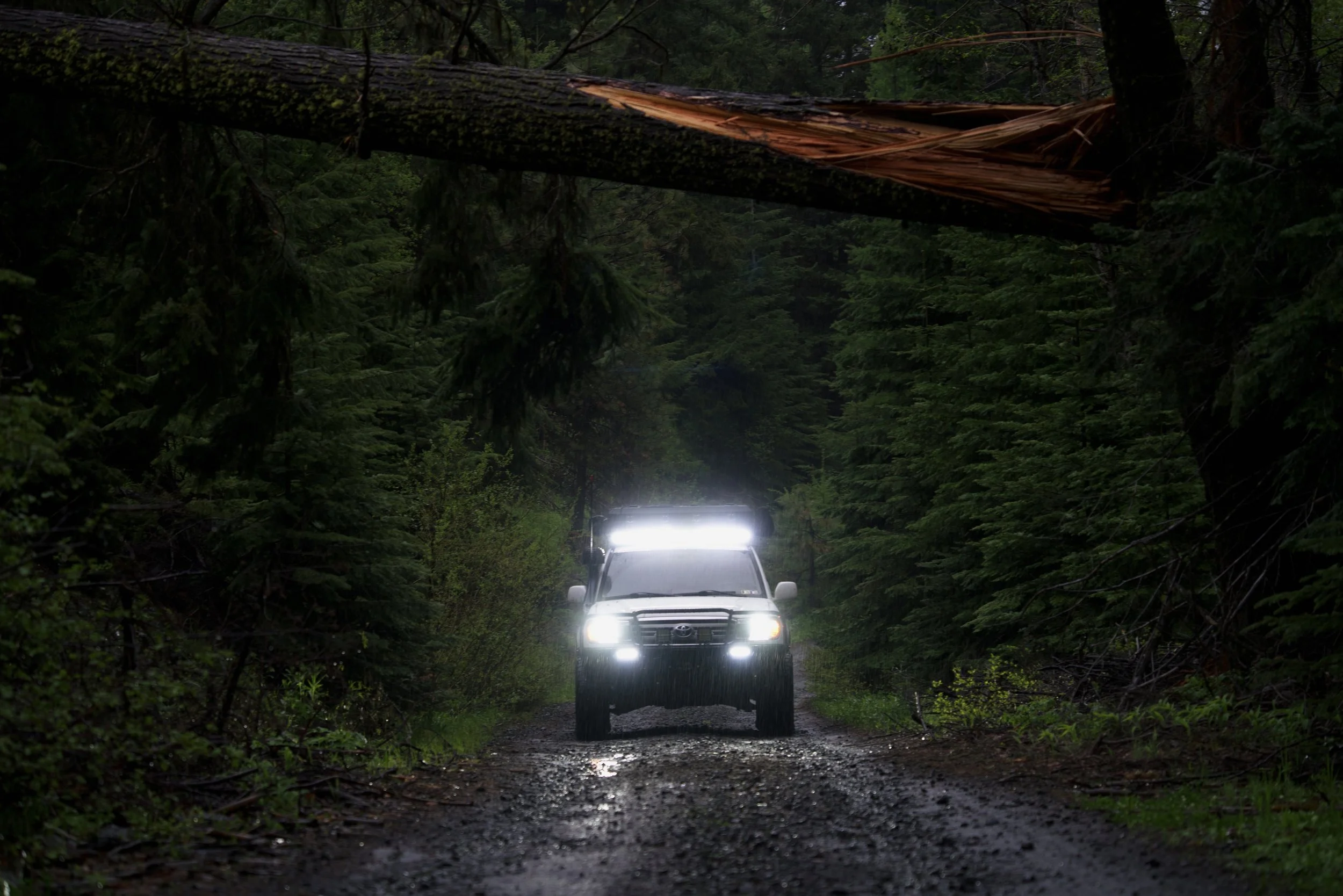 Sixteen long hours later the rain was heavy without an ending in sight. With a minor electrical problem looming over, a decision was made. The drive ended short of the goal. In the morning the repair was swift and the trek continued.